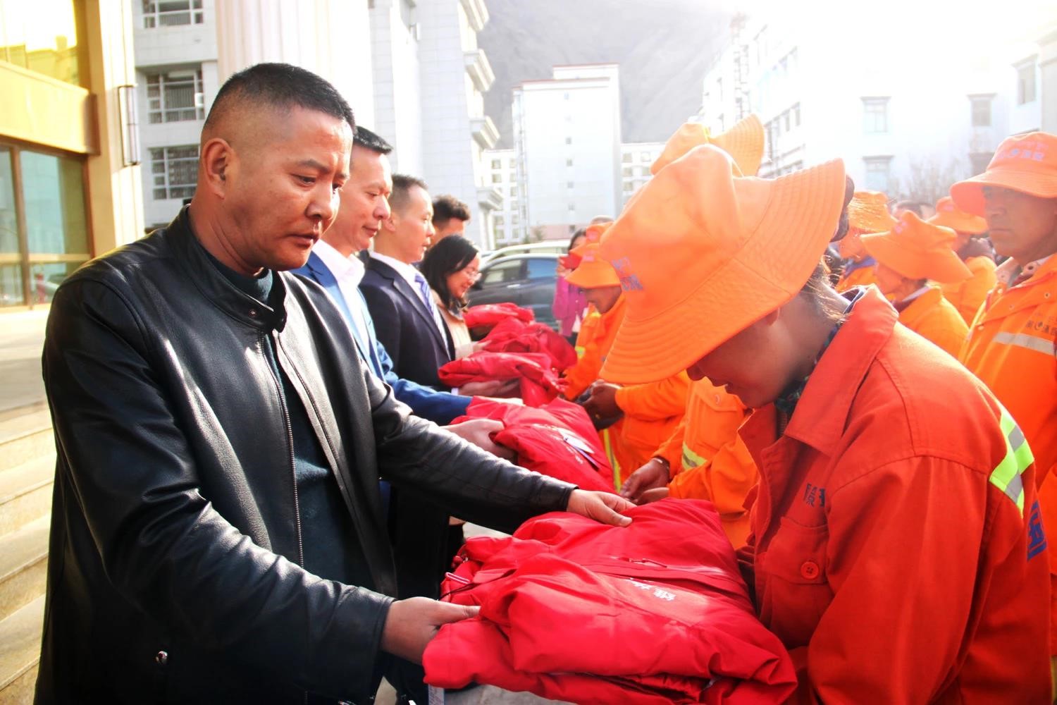 乃東區(qū)副區(qū)長格桑羅布、乃東區(qū)住房和城鄉(xiāng)建設(shè)局局長張俊、國策公司負責(zé)人次仁旺慶應(yīng)邀參加活動,并共同為環(huán)衛(wèi)工人發(fā)放了保暖御寒的嶄新環(huán)衛(wèi)工裝。