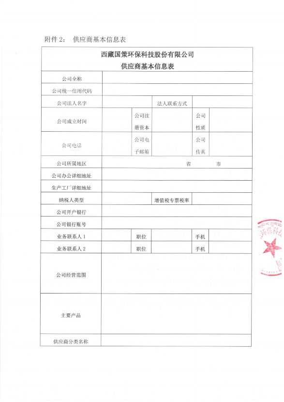 供應(yīng)商將資料整理成冊(cè)并每頁(yè)蓋章后掃描為PDF文件,發(fā)送至西藏國(guó)策環(huán)??萍脊煞萦邢薰静少?gòu)郵箱:cg@guoce.com。