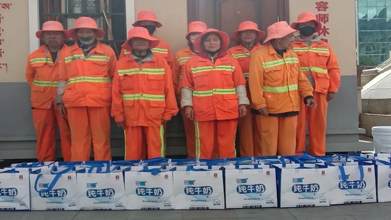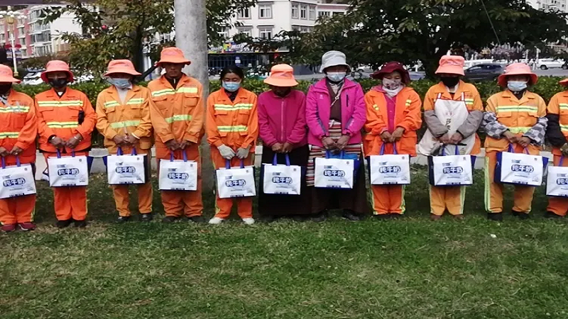 為感謝他們多年來的辛勤付出,國(guó)策環(huán)保林芝分公司相關(guān)人員向作業(yè)在一線的環(huán)衛(wèi)工人以每人80元的標(biāo)準(zhǔn),發(fā)放了當(dāng)?shù)靥禺a(chǎn)雪頓純牛奶、嘎瑪雞蛋、鹽等慰問品,共計(jì)274份。