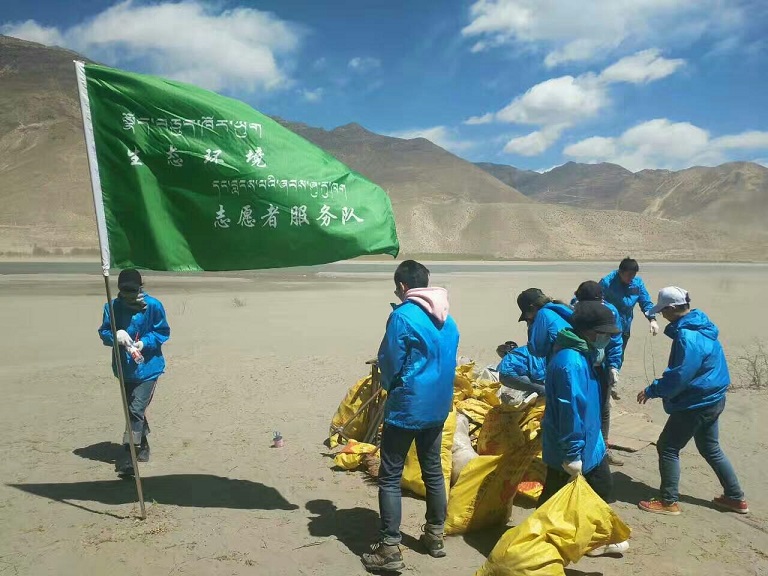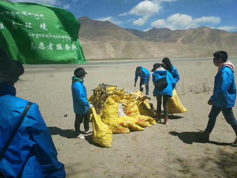 山南市團(tuán)委組織青年志愿者前往雅礱藏布江河畔清理河床垃圾——國(guó)策環(huán)保山南分公司協(xié)助垃圾清運(yùn)并處理。