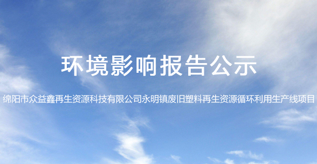 綿陽市眾益鑫再生資源科技有限公司永明鎮(zhèn)廢舊塑料再生資源循環(huán)利用生產(chǎn)線項目環(huán)境影響報..