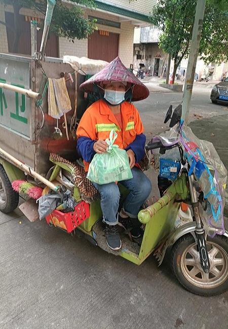 隨后,工作人員向現(xiàn)場520余名環(huán)衛(wèi)工人及園林工人挨個(gè)發(fā)放了藿香正氣水、風(fēng)油精、廣東涼茶顆粒、復(fù)方板藍(lán)根顆粒等防暑降溫用品。國策一線環(huán)衛(wèi)工人們接到派發(fā)的消暑用品時(shí)紛紛露出了開心的笑容:“大熱天有公司發(fā)放的消暑用品,解暑清涼,很開心?!?br />